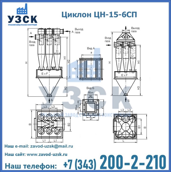 Завод «УЗСК» в Орске предлагает большой выбор циклонов ЦН-15-500×6СП и прочих устройств, полностью укомплектованных и готовых к эксплуатации. Мы гарантируем соответствие оборудования всем требованиям ГОСТ и ТУ, износостойкость и высокую производительность предлагаемого оборудования. Уральский Завод Стальных Конструкций изготавливает и продает надежное, эффективное и производительное оборудование, имеющее длительную гарантию и большой эксплуатационный ресурс. Если требуется изготовить циклон нестандартных размеров, то такой вариант выполнения заказа тоже предусмотрен, так как предприятие имеет собственные производственные площади и надежных поставщиков. На все поставляемое или производимое оборудование имеются чертежи и прочая техническая документация. Заказать и купить циклоны или прочее оборудование высокого качества и по доступной цене можно через наш сайт или по указанному в разделе «Контакты» телефону.