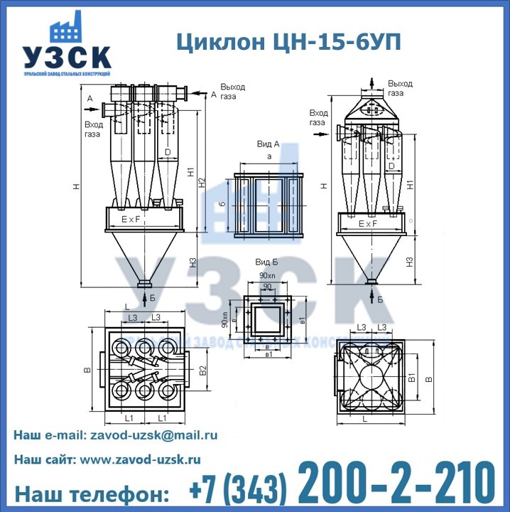 Завод «УЗСК» в Орске предлагает большой выбор циклонов ЦН-15-700×6УП и прочих устройств, полностью укомплектованных и готовых к эксплуатации. Мы гарантируем соответствие оборудования всем требованиям ГОСТ и ТУ, износостойкость и высокую производительность предлагаемого оборудования. Уральский Завод Стальных Конструкций изготавливает и продает надежное, эффективное и производительное оборудование, имеющее длительную гарантию и большой эксплуатационный ресурс. Если требуется изготовить циклон нестандартных размеров, то такой вариант выполнения заказа тоже предусмотрен, так как предприятие имеет собственные производственные площади и надежных поставщиков. На все поставляемое или производимое оборудование имеются чертежи и прочая техническая документация. Заказать и купить циклоны или прочее оборудование высокого качества и по доступной цене можно через наш сайт или по указанному в разделе «Контакты» телефону.