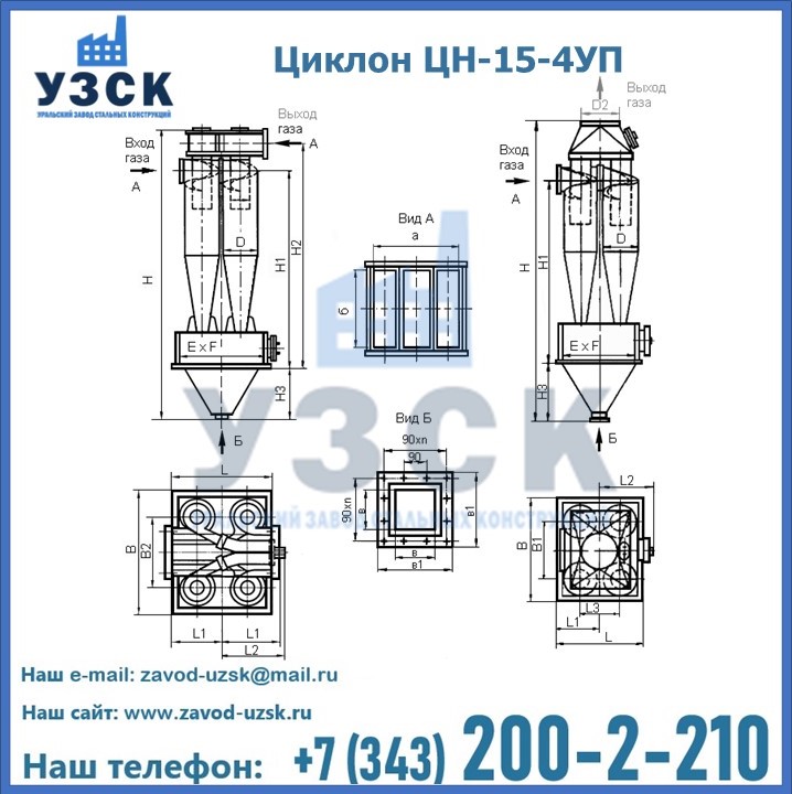 Завод «УЗСК» в Орске предлагает большой выбор циклонов ЦН-15-800×4УП и прочих устройств, полностью укомплектованных и готовых к эксплуатации. Мы гарантируем соответствие оборудования всем требованиям ГОСТ и ТУ, износостойкость и высокую производительность предлагаемого оборудования. Уральский Завод Стальных Конструкций изготавливает и продает надежное, эффективное и производительное оборудование, имеющее длительную гарантию и большой эксплуатационный ресурс. Если требуется изготовить циклон нестандартных размеров, то такой вариант выполнения заказа тоже предусмотрен, так как предприятие имеет собственные производственные площади и надежных поставщиков. На все поставляемое или производимое оборудование имеются чертежи и прочая техническая документация. Заказать и купить циклоны или прочее оборудование высокого качества и по доступной цене можно через наш сайт или по указанному в разделе «Контакты» телефону.