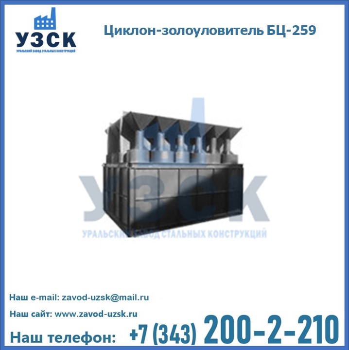 Если вы планируете купить то или иное оборудование, например, циклоны-золоуловители БЦ-259, то рекомендуем заказать данный товар на сайте УЗСК. Мы производим и реализуем продукцию высокого качества по приемлемой цене. Эксперты Уральского Завода Стальных Конструкций в Орске проконсультируют вас по всем вопросам, помогут сделать выбор и оформить заказ без лишних временных затрат. Мы гарантируем соответствие нашей продукции всем требованиям ГОСТ и ТУ, а также износостойкость и высокую производительность предлагаемого оборудования. Если требуется изготовить циклон нестандартных размеров, то такой вариант выполнения заказа тоже предусмотрен, так как предприятие имеет собственные производственные площади и надежных поставщиков. На все поставляемое или производимое оборудование имеются чертежи и прочая техническая документация. Заказать и купить циклоны или прочее оборудование высокого качества и по доступной цене можно через наш сайт или по указанному в разделе «Контакты» телефону.