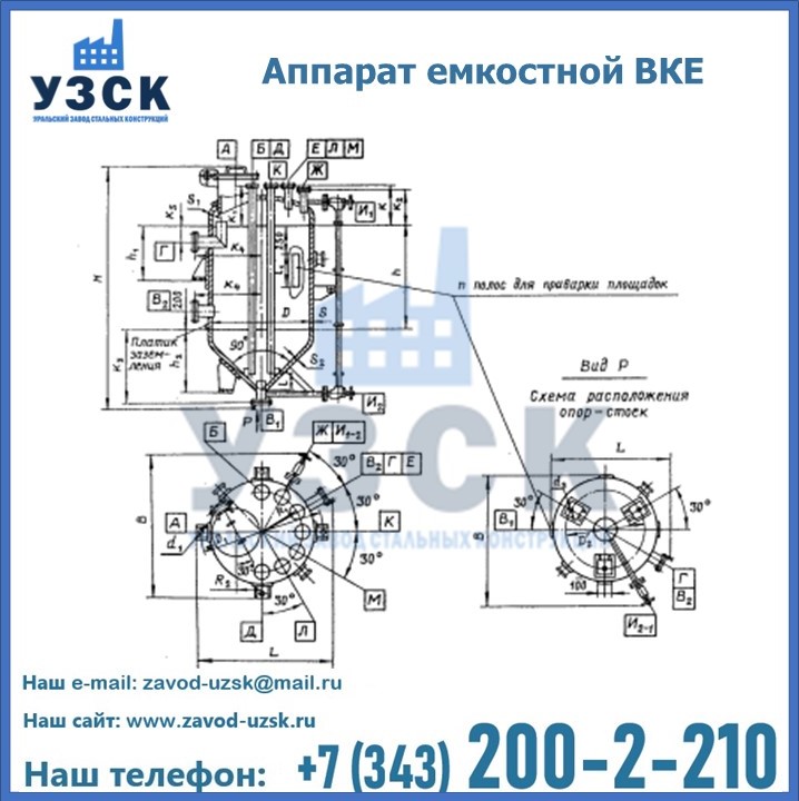 Емкостные аппараты ВКЭ представляют емкость с эллиптической крышей и коническим днищем. аппарат может использоваться в Орске для приема и хранения жидкостей и взрыво- и пожароопасных веществ. Создаваемое давление не должно превышать 0,6; 1,0 МПа. Емкости ВКЭ выполняются как цельносварные. Используется марка стали, отвечающая степени агрессивности продукта и температуре эксплуатации.