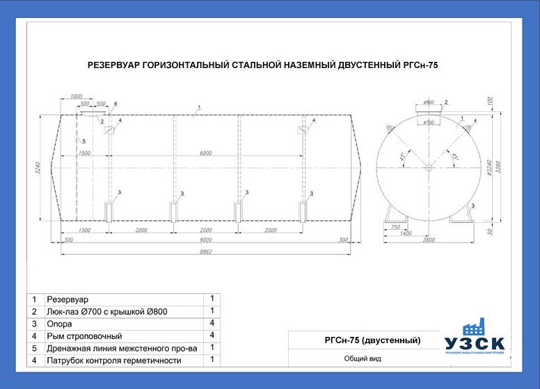 РГСДн-75: горизонтальный резервуар двустенный наземного расположения;